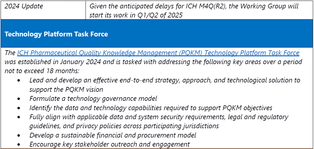 Link to: ICH Pharmaceutical Quality Knowledge Management (PQKM) Technology Platform Task Force